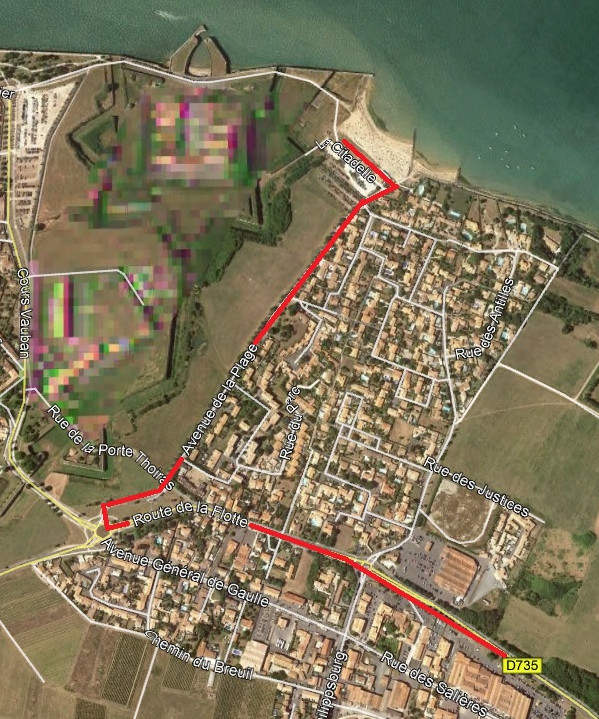 | Le cheminement vers le pas de tir est très simple il faut suivre la direction de la plage au rond-point à l'entrée ouest de la commune. |